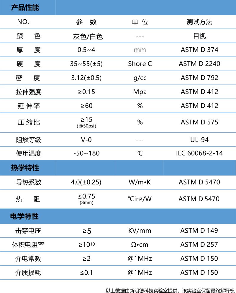 鸿昌轩HD-4000A导热硅胶垫片,是一款柔软性好,超高导热的热界面材 料。产品具有很好的电气绝缘特性及耐温性能,并具有高拉伸及高撕裂强度。 产品自然粘性和防火性能高,能够很好地填充间隙,实现发热部件到散热部件 之间的热传递。产品极具工艺性和使用性,是一种极佳的导热填充材料,被广 泛应用于新能源产品中。