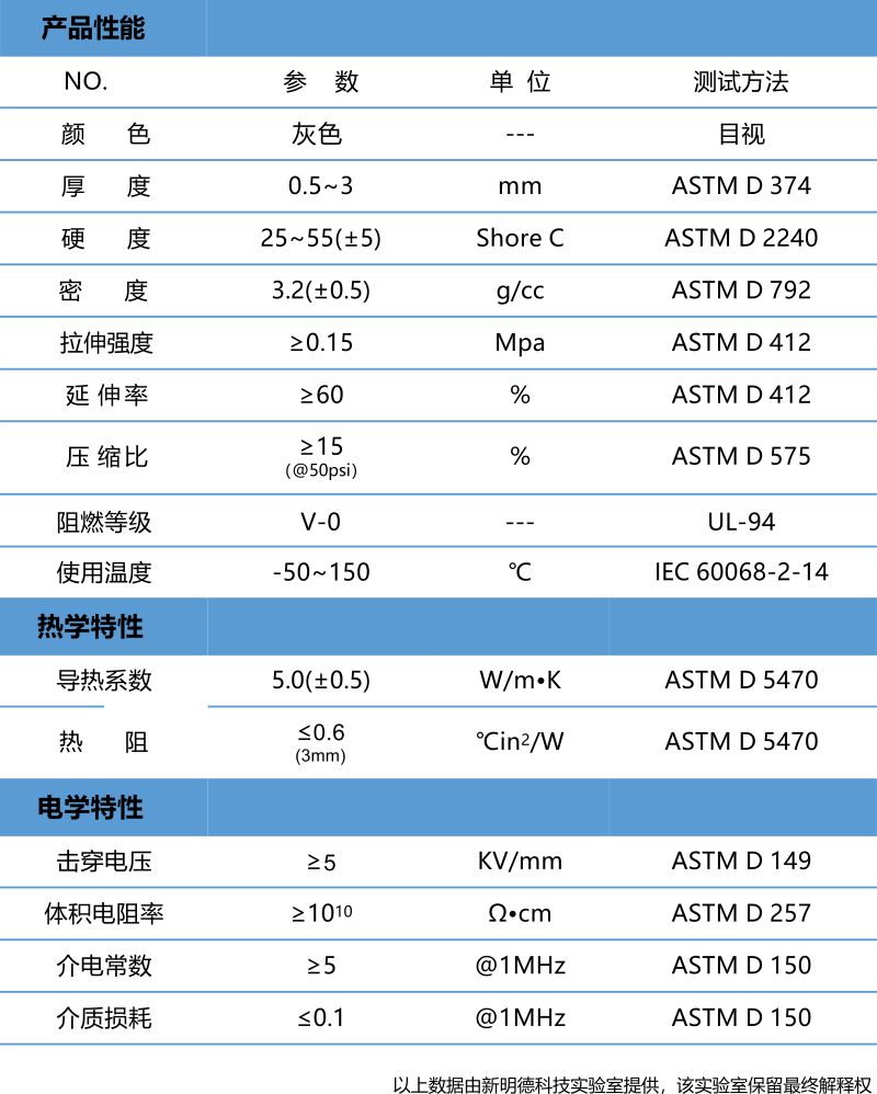 鸿昌轩HD-5000A导热硅胶垫片,是一款柔软性好,超高导热的热界面材 料。产品具有很好的电气绝缘特性及耐温性能,并具有高拉伸及高撕裂强度。 产品自然粘性和防火性能高,能够很好地填充间隙,实现发热部件到散热部件 之间的热传递。产品极具工艺性和使用性,是一种极佳的导热填充材料,被广 泛应用于新能源产品中。